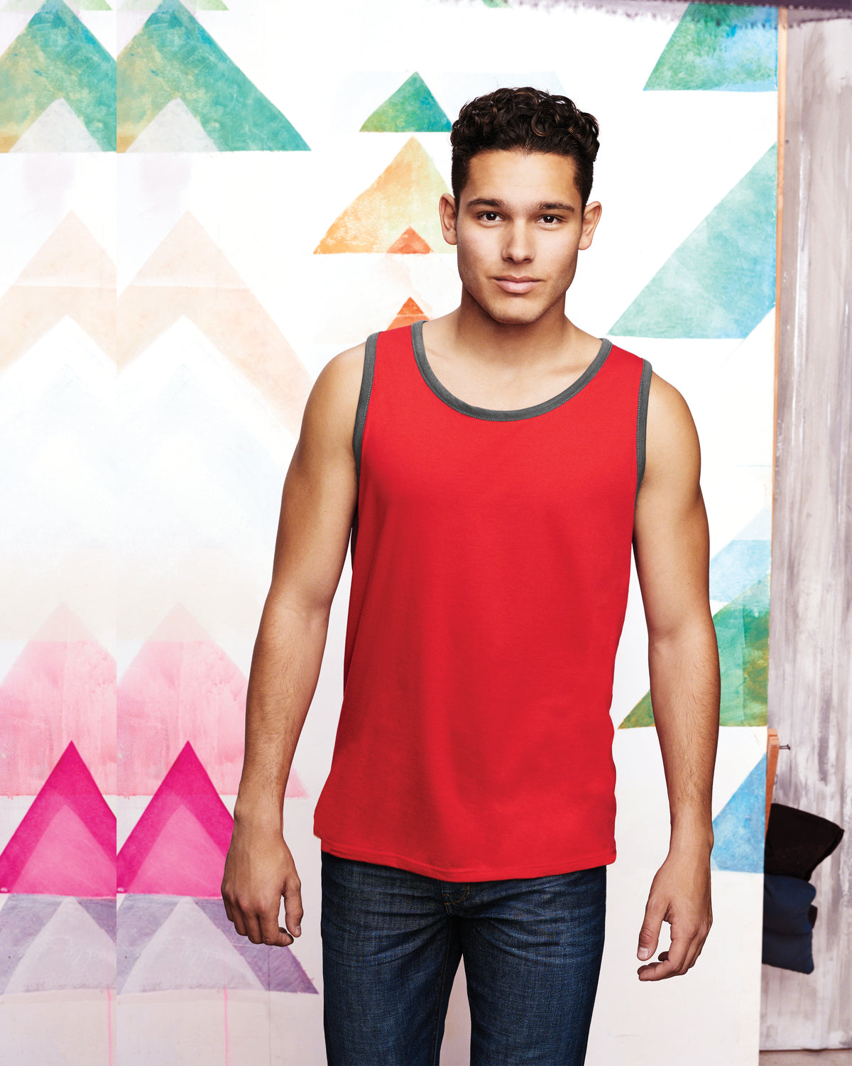 This ringer runs rings around standard tanks. 3.8-ounce, 100% ring spun combed cotton, 40 singles