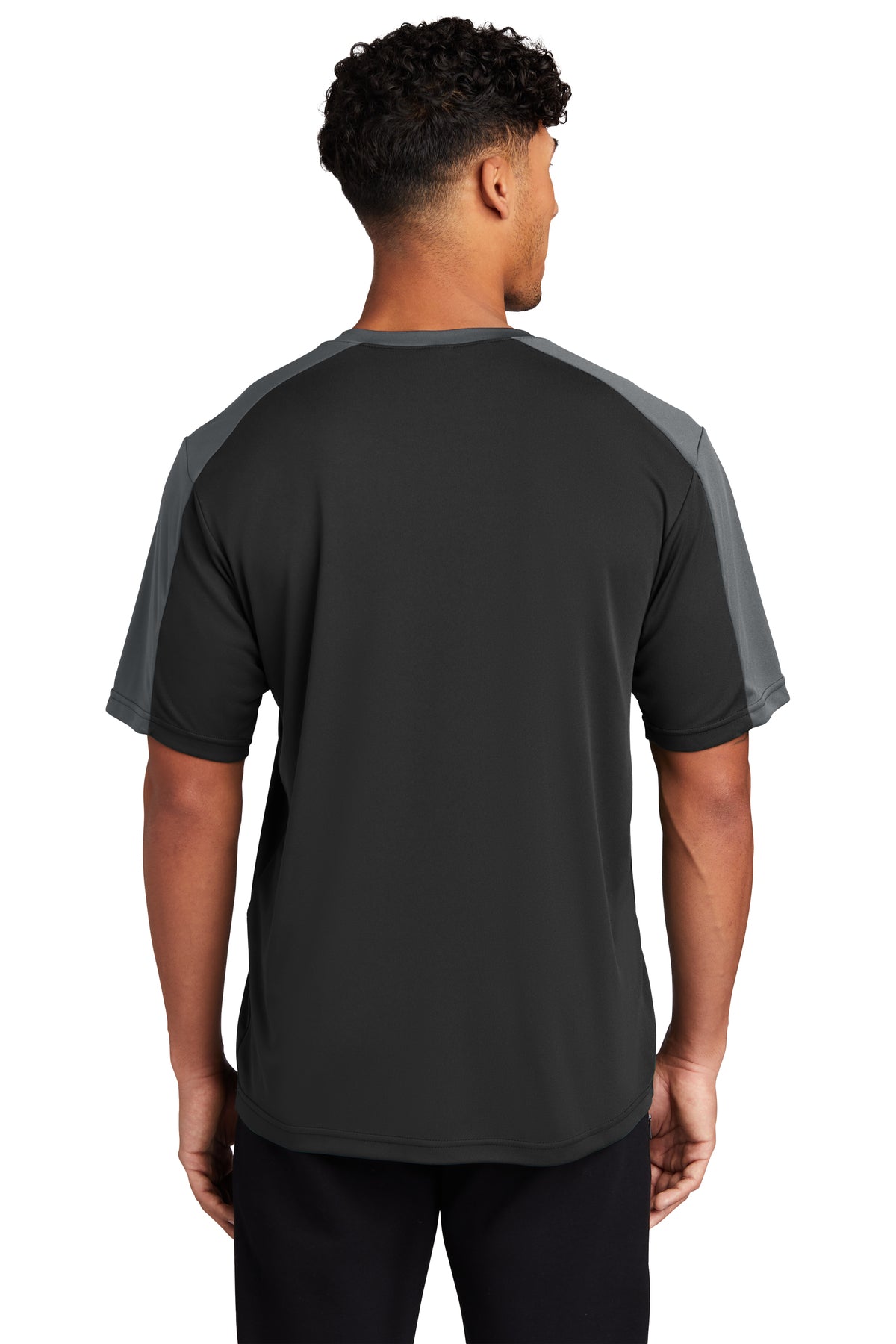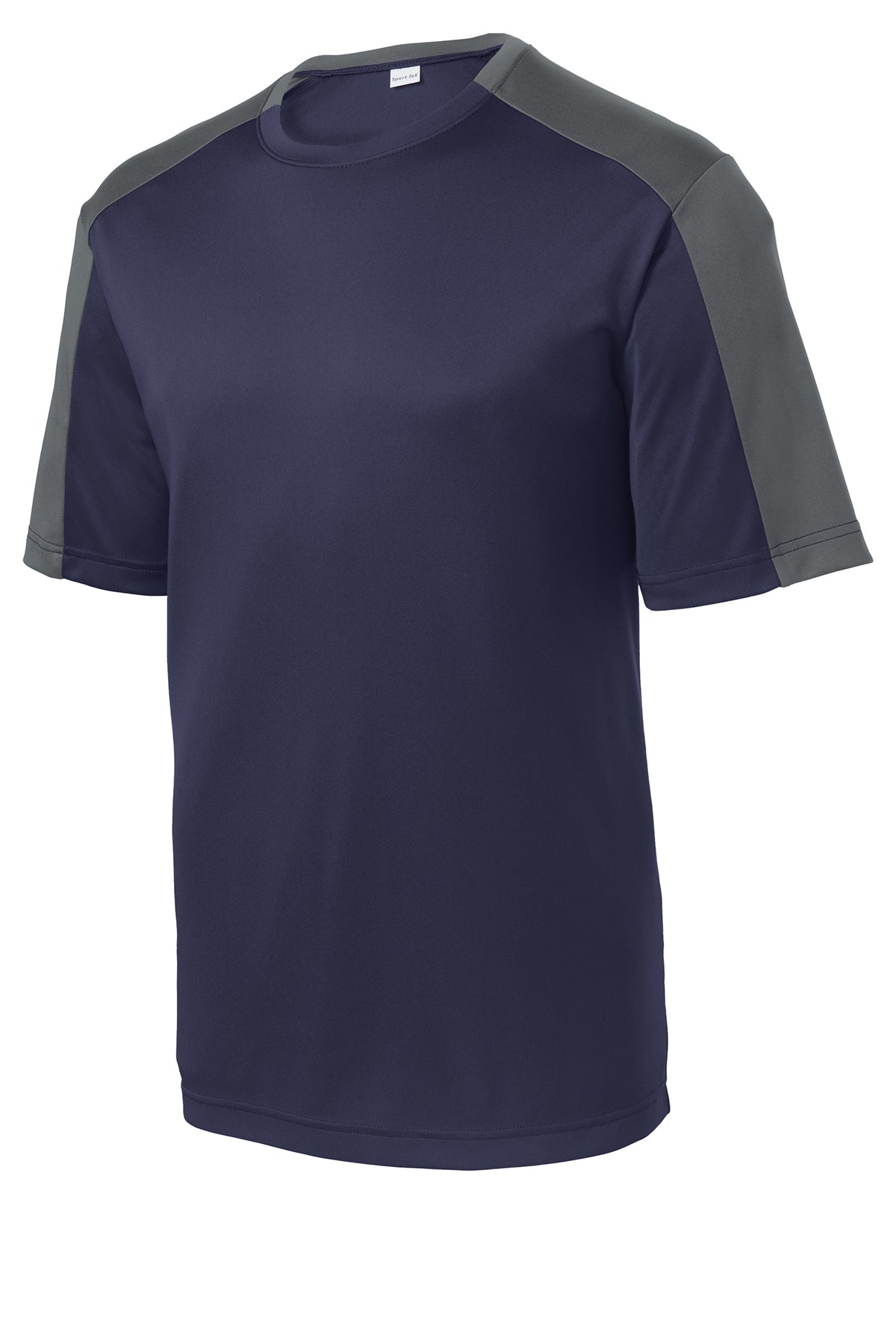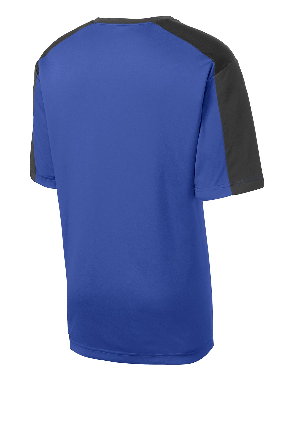 Contrast sleeve blocking enhances the athletic look of our colorfast, moisture-wicking, value-priced essential.